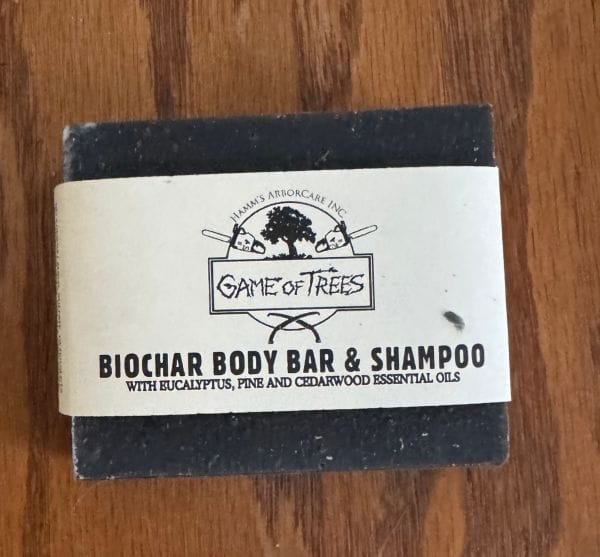 Buy One Get One! Any Bio Char or BioBlossoms product! BioChar Body Bar & Shampoo with Eucalyptus, Pine and Cedar oils for tree loving arborists.